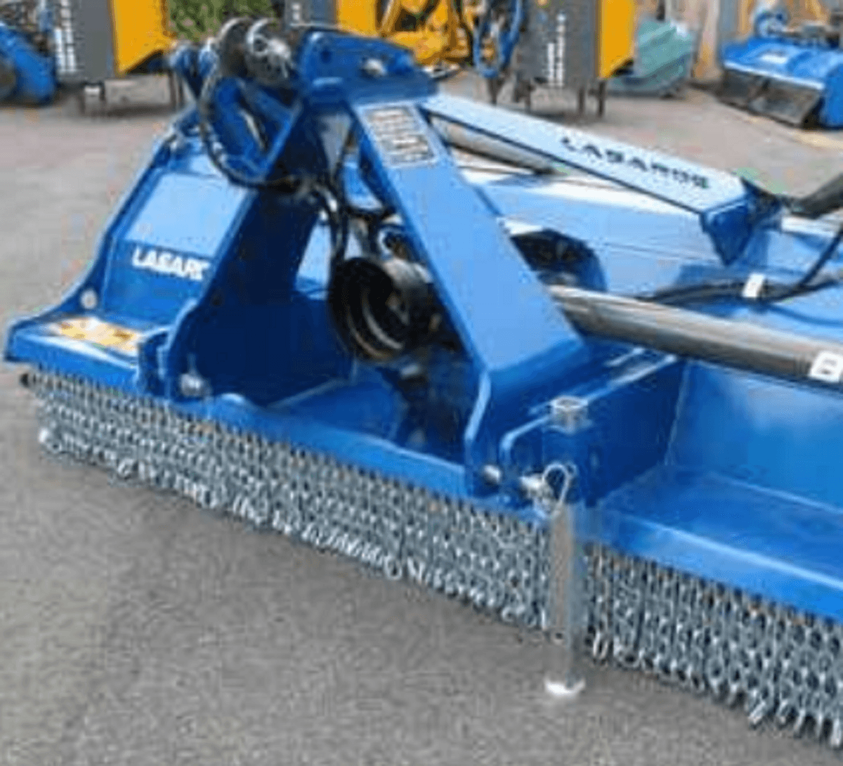 2-Broyeur arrière semi-forestier BSF I pour conditions difficiles pouvant broyer des branches jusqu’à 12 cm Ø avec une largeur de travail allant de 1,8 m à 3 m. Robuste : fond de caisse 5 mm, flancs 10 mm Protection avant par double rideau de chaînes.