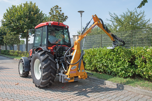 Les modèles T350S ont une portée horizontale de 3,62 m. Equipé d'une tailleuse de haies CS150 avec moteur 32 cv, ils peuvent travailler à gauche comme à droite.