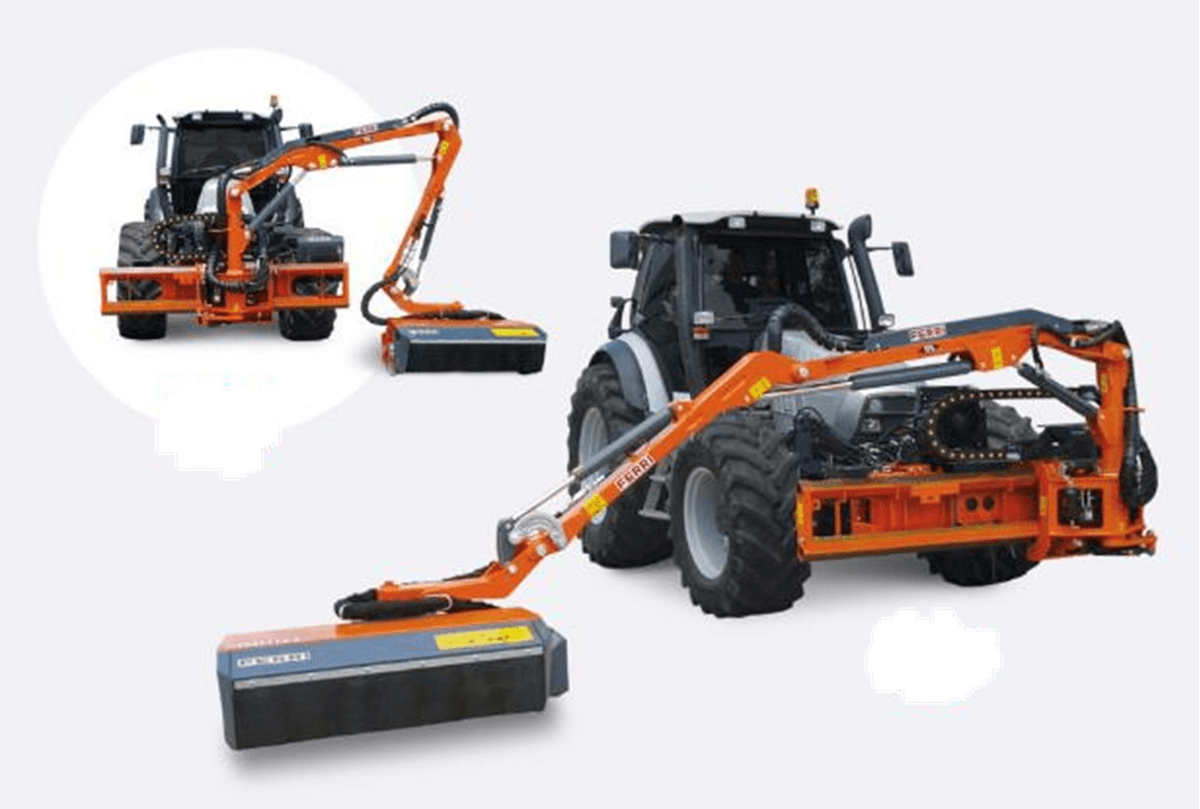 2 – Epareuse frontale hydraulique TSF polyvalente puisque réversible, elle travaille à gauche et à droite pour le broyage d’herbes, de ronces et bordures de routes… Portée horizontale de 5,75 m. Commande électronique proportionnelle avec gestion électrique du rotor (SC-Tronic Dual).