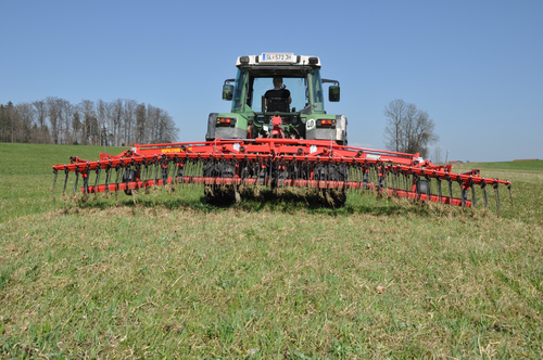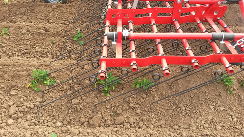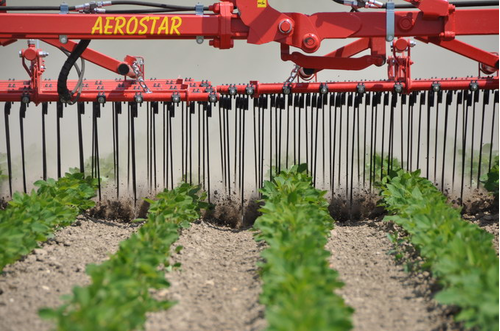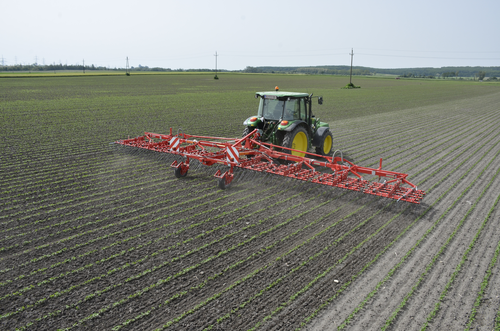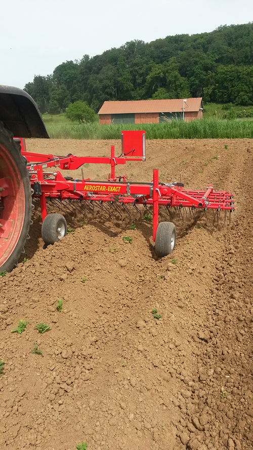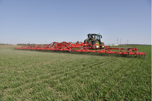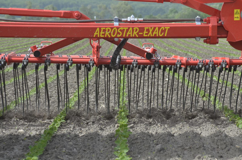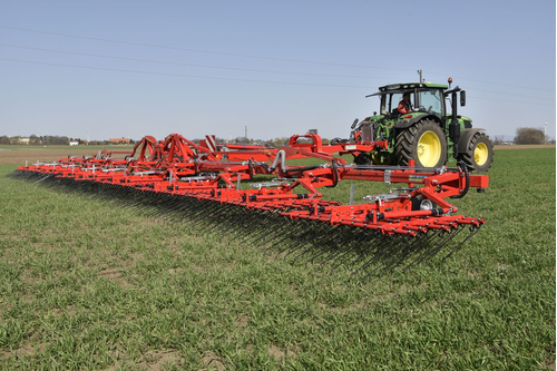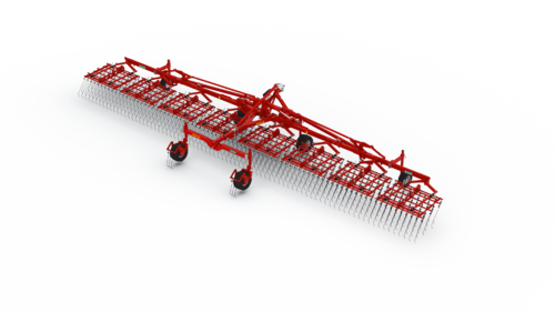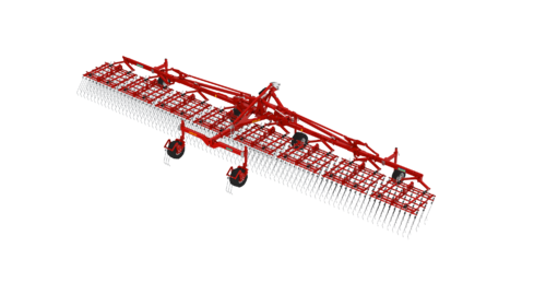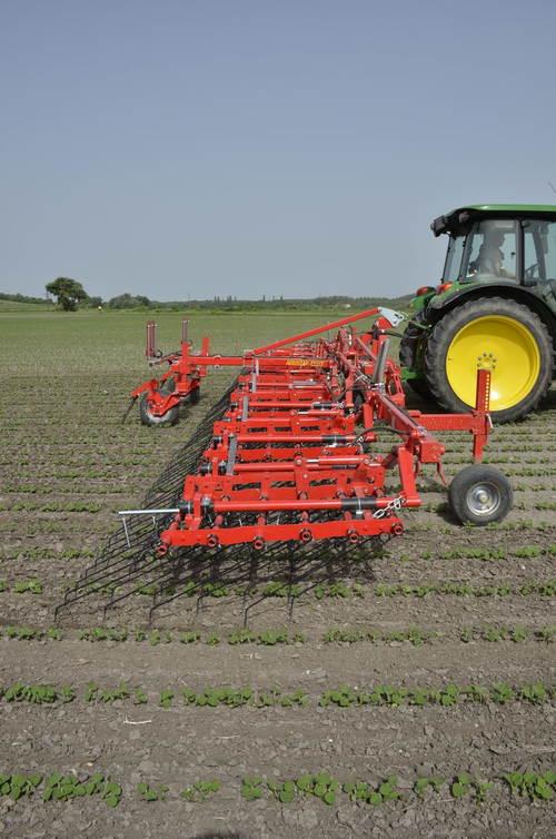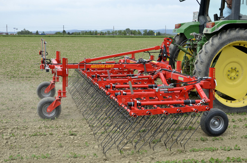 Dents individuelles de 7 mm, jusqu’à 530 mm de passage (pour culture haute et buttes), réglage hydraulique de l’agressivité (jusqu’à 6 kg de pression par dent), châssis fermé qui s’adapte parfaitement au sol, repliage facile, silencieux même à vitesse élevée. Largeurs de travail de 2 m à 15 m. Choix d’équipements en option.