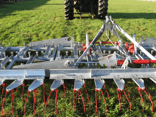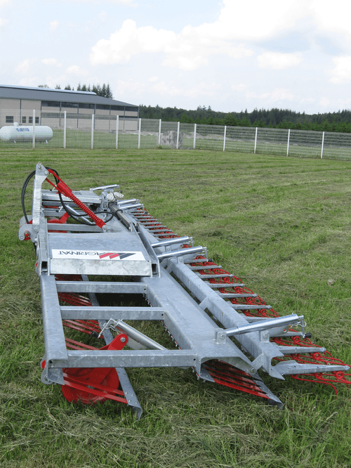 - 1 - RASETTES ET REGENERATEURS DES PRES : châssis entièrement galvanisé à chaud, assemblage mécanosoudé de tôles haute résistance pliées à froid, repliable grâce à un vérin hydraulique double effet, hauteur des dents étrilles réglables, et différents équipements de série en fonction du modèle.