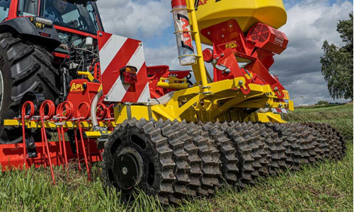 5 - Rouleau de prairie GW pour les grandes cultures. Combinaison possible avec une herse frontale ou un semoir APV (PS ou MD). Rouleaux Cambridge 390 mm ou 530 mm ou rouleau denté 410 mm créent une structure de lit de semences friable et de bonne qualité Compartiment à outils intégré dans le cadre