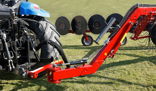 Les andaineurs traînés à 2 rotors sont robustes et efficaces et assurent des andains réguliers, homogènes...