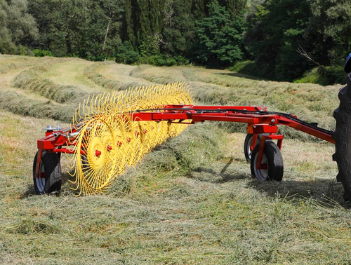 Les andaineurs traînés à 2 rotors sont robustes et efficaces et assurent des andains réguliers, homogènes...