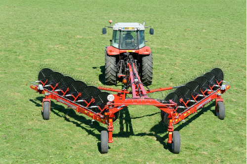 Les andaineurs traînés à 2 rotors sont robustes et efficaces et assurent des andains réguliers, homogènes...