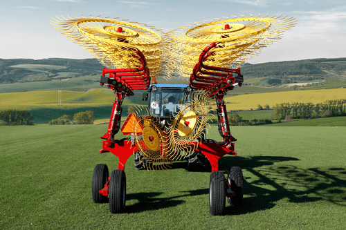Les andaineurs traînés à 2 rotors sont robustes et efficaces et assurent des andains réguliers, homogènes...
