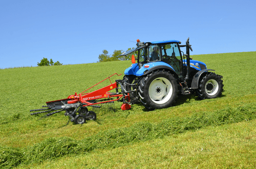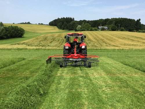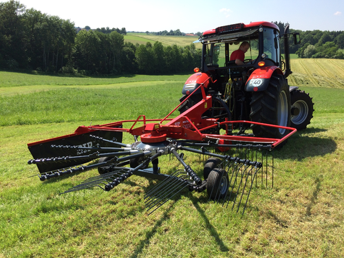 Les andaineurs traînés à 2 rotors sont robustes et efficaces et assurent des andains réguliers, homogènes...