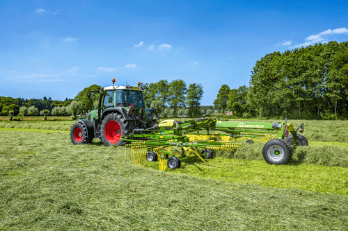Les andaineurs traînés à 2 rotors sont robustes et efficaces et assurent des andains réguliers, homogènes...