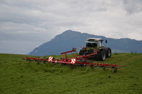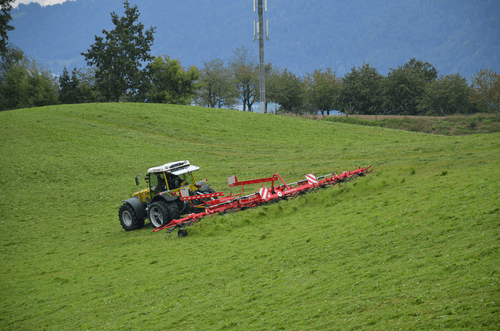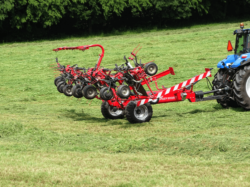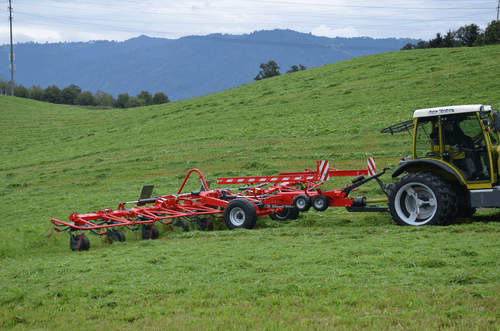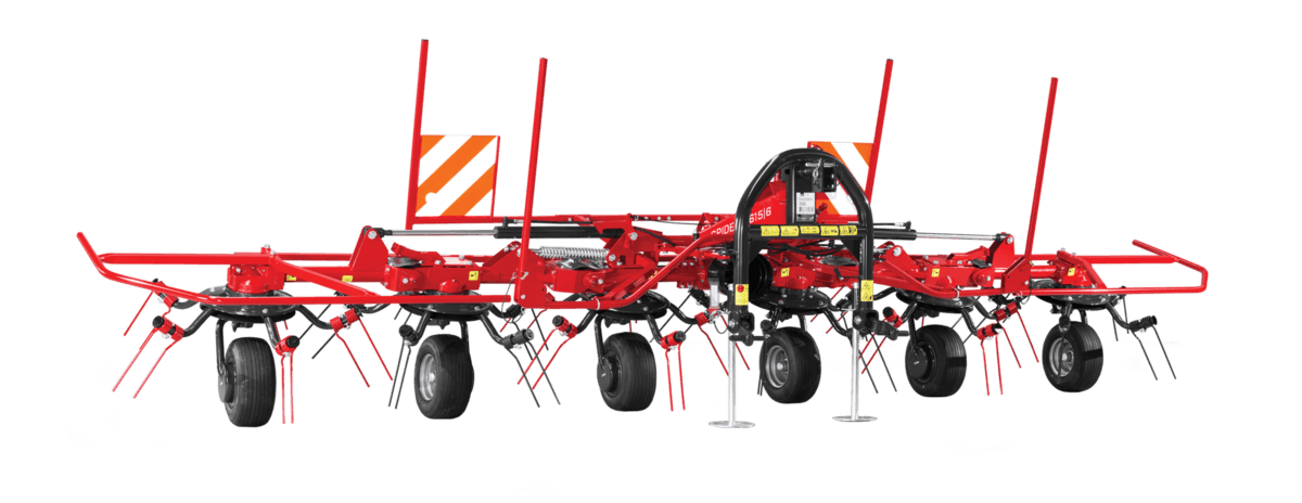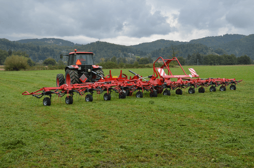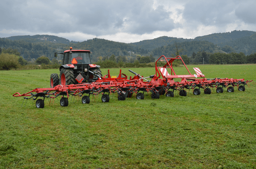 Gamme de faneuses rotatives professionnelles semi-portées de 8 à 14 rotors robustes (8.80m à 14.80m de travail) pour de grandes surfaces avec des fourrages denses. Technologie permettant une utilisation simple, fourrage uniformément réparti sans contamination par la terre ou le sable. Angle de fanage réglable facilement pour un travail aisé et rapide.