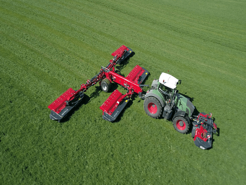 Faucheuse 4,50 m, équipée de série du système unique sur le marché de transfert de charge automatique...