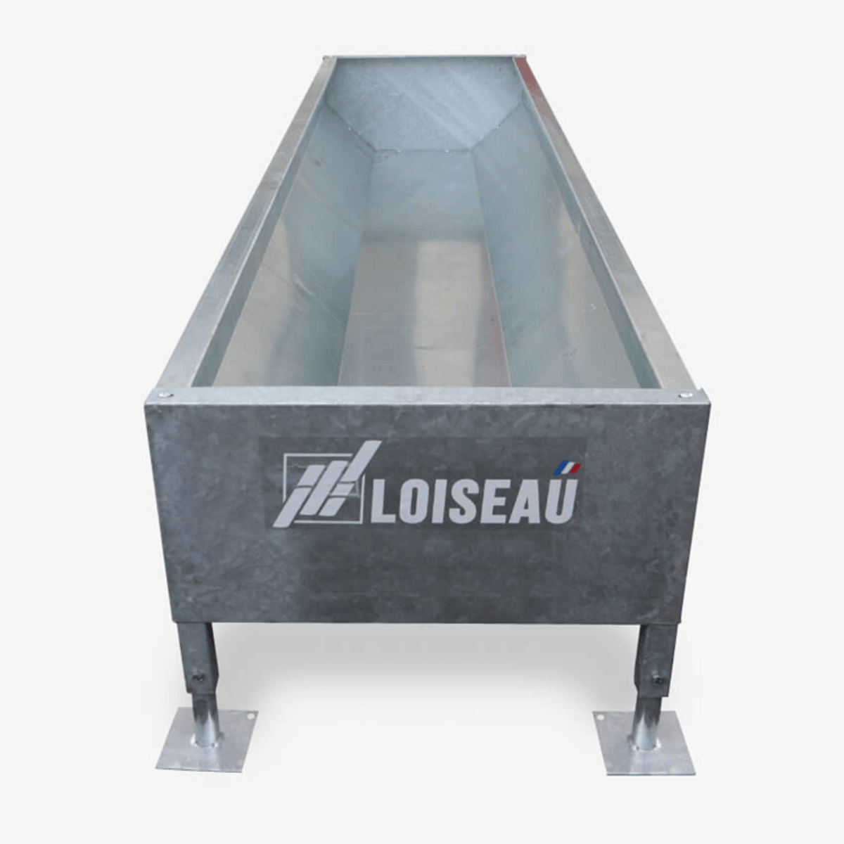 Une large gamme d’auges pour bovins, caprins, porcs peintes ou galvanisées selon les modèles. Ces auges existent sur pieds fixes, pieds réglables, sur roues. Longueur de 3 à 6 m, tôle de 1,5 mm à 3 mm et largeur extérieure jusqu’à 80 cm en fonction des modèles.