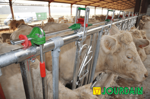 Il est équipé d'un embout réglable et orientable, d'un anti passage de veaux et d'un système de verrouillage individuel central.