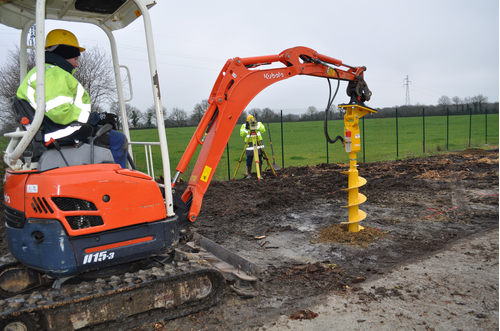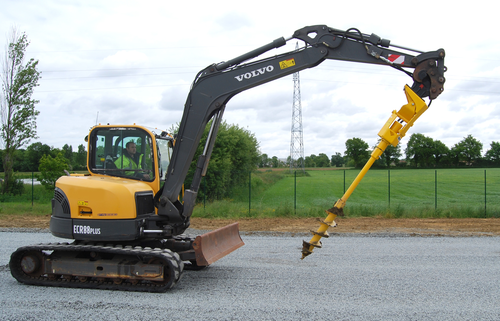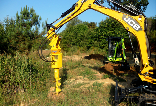 La tarière TRH pour pelle s'adapte sur tout engin hydraulique inférieur à 15 tonnes (mini-pelle, tracto pelle ou pelle).