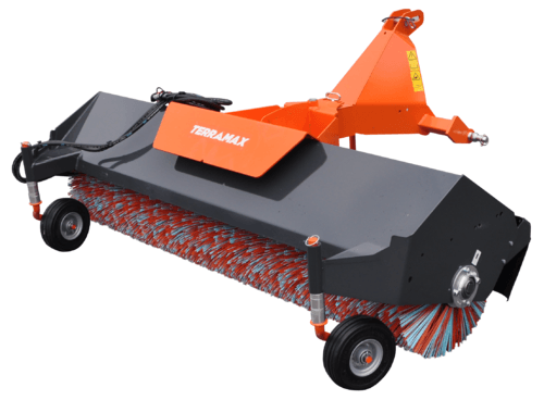 Balai mixte Polyester/Polypropylène Ø550mm, largeur 2,40m. Entraînement hydraulique. Orientation et déport mécanique 8 positions (D et G). 2 roues de terrage 400 x 80 pivotantes à 360° et réglables en hauteur. Béquille de dépose. Moteur hydraulique protégé. Attelage trois point arrière.