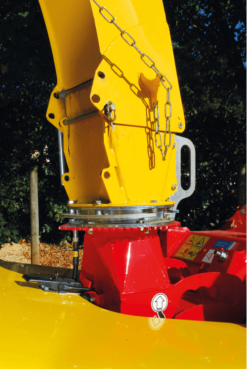 Réglage de la vitesse du rouleau hydraulique par molette extérieure. Goulotte d’éjection orientable sur 360°