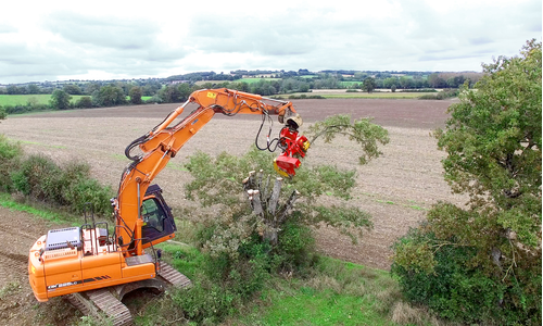 Sur pelle hydraulique de 13 à 25 tonnes selon modèle, avec un diamètre de coupe de 310 mm et 400 mm. Puissance de coupe jusqu'à 60 tonnes. Sécurité avec les pinces supérieures hautes qui assure un maintien de l'arbre après la coupe et lors du transport du bois.