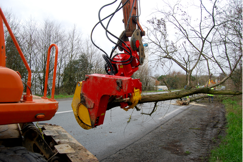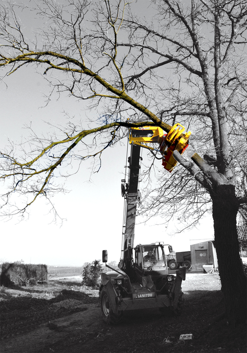 Sur pelle ou télescopique, grappin coupeur tête d'abatage.