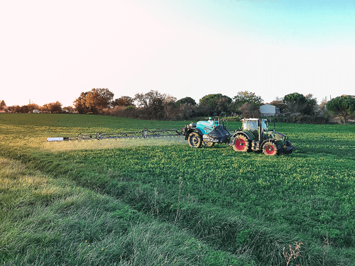 Cuve 5 500L. Rampes aluminium de 24 à 38m. Suspension pneumatique de l’essieu et suspension du timon...