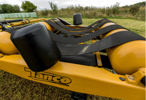 ÉQUIPEMENTS DE SÉRIE • Distributeur d'aluminium Tanco double tension 55% ou 70% option de pré-étirage intégré au choix suivant le besoin (A REMPLACER PAR : Unité de pré-étirage avec rapport de 70/55 % pour film de 750 mm) • Ordinateur de contrôle Expert RDS tout automatique • Kit Télécommande Radio • Capteur de rupture de film • Coupe-film et démarrage hydraulique automatique ÉQUIPEMENTS EN OPTION • Retourneur de balle place les balles sur leur face plate, là où la couverture de film plastique est la meilleure et évite que les balles ne roulent