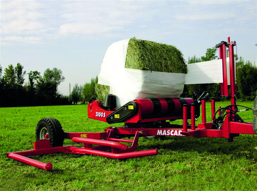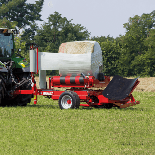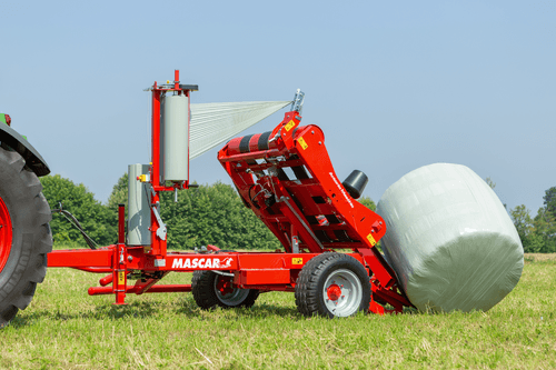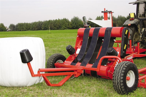 Enrubanneuse portée à 3 points pour balles rondes jusqu’à 1,7 m de diamètre et balles carrées jusqu’à...