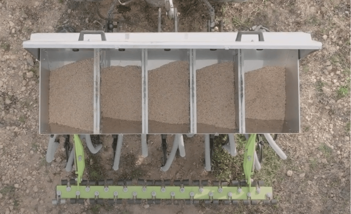 Le semoir de couverts végétaux BIOSEM est équipé d’une trémie en fer zingué avec 5 compartiments séparés pour semences en simultanées. Equipé d’un moteur avec régulateur hydraulique pour contrôle de dosage. Principalement conçu pour les vignes et les vergers bio.