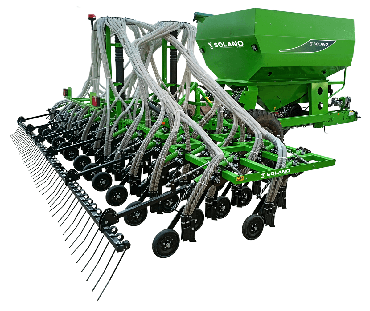 Les modèles SNC en simple trémie 6000L et en double trémie 7500L sont des semoirs pneumatiques avec sécurité ressort (bagues en téflon), et peuvent se monter avec différent train de semis (TNR-TND-TDL-TDR et TDC).