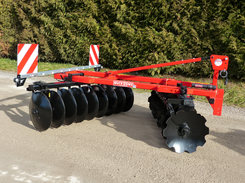 * PVM pulvériseur porté en V, châssis bipoutre 80 x 80 mm, train de disques de 120 x 60 mm.