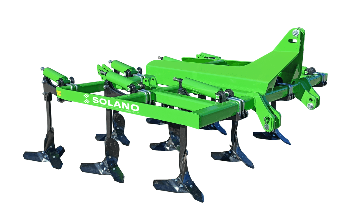 Conçu avec un châssis en tube structurel 100 x 100 x 8 mm, sa profondeur de travail peut atteindre jusqu'à 40 cm avec un dégagement verticale sous châssis de 80 à 85 cm selon modèle et un dégagement entre les rangées de 75 cm. L'attelage est de catégorie III, le bras monté avec sécurité non-stop mécanique à ressort, avec bagues en téflon et double ressorts (sauf option sécurité boulon). Tous les modèles sont conçus de base sans disques ni rouleau, lesquels sont à choisir en options selon vos besoins.