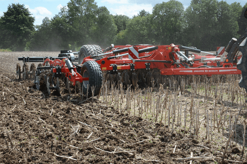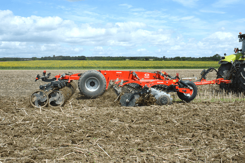 Idéal pour les tracteurs de faible puissance de 85 à 125cv, dégagement sous bâti de 725mm, distance entre les deux rangées de disques de 950mm, déflecteur latéral gauche pour capter le flux de terre dans le gabarit de la machine., monté sur pivot pour s’escamoter en cas de rencontre avec un corps étranger, déflecteur latéral droit en option.