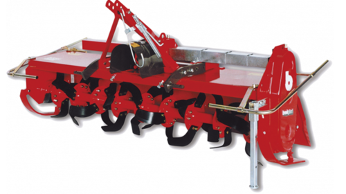 Fraise rotative avec rotor à lames équerres et prise de force à 540 tr/min ou 1000 tr/min.