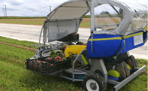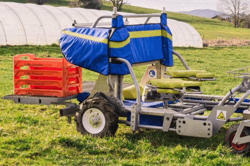 Le cobot Toutilo combine un porte-personne et un porte-outil. Il est polyvalent pour planter, désherber, récolter et transporter les différentes cultures végétales, augmente la productivité́ et préserve la santé et le confort de travail des utilisateurs. À motorisation électrique, il peut être utilisé sous serre comme en plein champ, en toute saison. Réglable en fonction de la morphologie de chacun. La position peut être assise ou semi allongée pour une meilleures visibilité. Le but de cette machine étant d’anticiper les troubles musculo squelettiques liés à la pénibilité du travail (se baisser, porter des charges lourds, etc…) Possibilité d’accueillir jusqu’à 4 personnes.