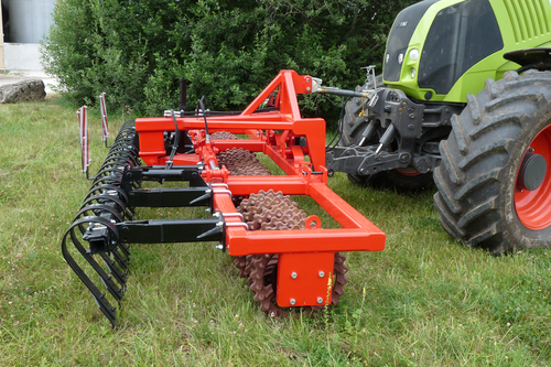 Châssis monopoutre 150 x 100 pour les modèles rigides et d’un châssis bipoutre 100 x 100 pour les modèles repliables. Réglage en profondeur du rouleau indépendant des 2 rangées de dents. Attelage 3 points en chape poussé directionnel catégorie 2. Arbre 70 mm de diamètre, palier type UCF 212. Grand choix de types de rouleaux sont proposés