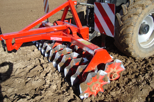 Disques de 510 mm de diamètre, attelage 3 points en chape poussé directionnel catégorie 2.Arbre 40 mm de diamètre, palier acier, roulement à billes triple étanchéité.Raclettes.