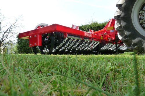 4 - RLP, rouleau porté poussé adapté aux conditions difficiles avec 2 rangées de dents vibrantes 32 x 10 mm, écartées de 16 cm et un dégagement sous châssis de 400 mm.