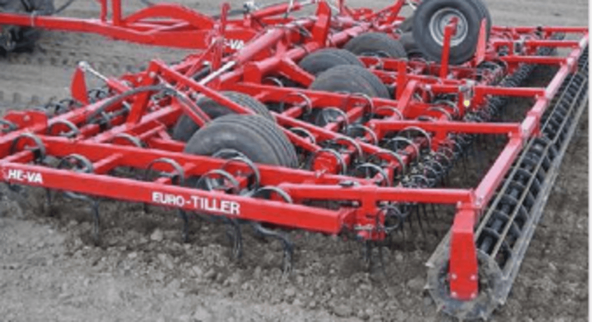 2 - Le vibroculteur Euro-Tiller se distingue par ces 7 rangées de dents de herse. Avec des roues boogie balanciers larges de 300 mm garantissant une grande stabilité sur le terrain et une profondeur de la herse précise et constante pour différents types de sol. Disponible de 6 m à 10 m de largeur de travail. Grands choix d’équipements en option pour de nombreuse combinaisons pour différentes tailles d’exploitations. Machine parfaite pout lit de semence pour les betteraves, le maïs, les pommes de terre et cultures spéciales.E10VV