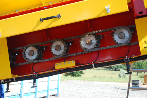 Entraînement électrique ou hydraulique des rouleaux. Rouleaux en rotation continue, vitesse 58 tr/mn. Evacuation des déchets par le bas.
