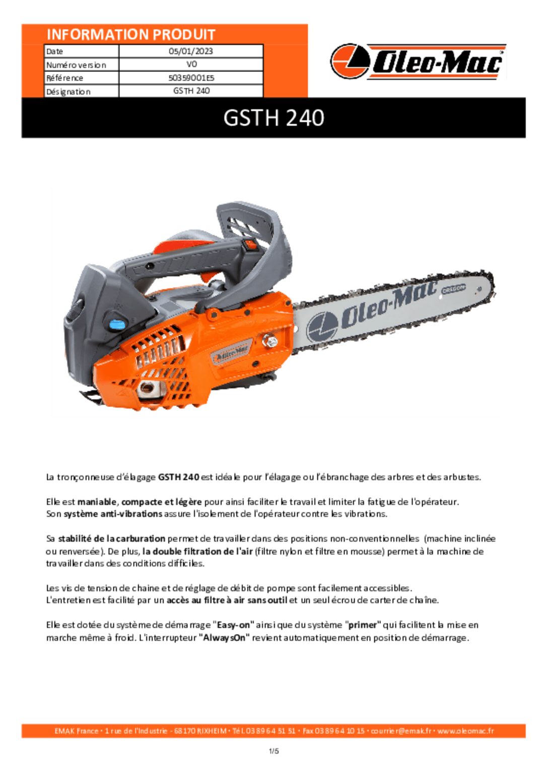Carburant : mélange 2% huile type ISO-L-EGD.