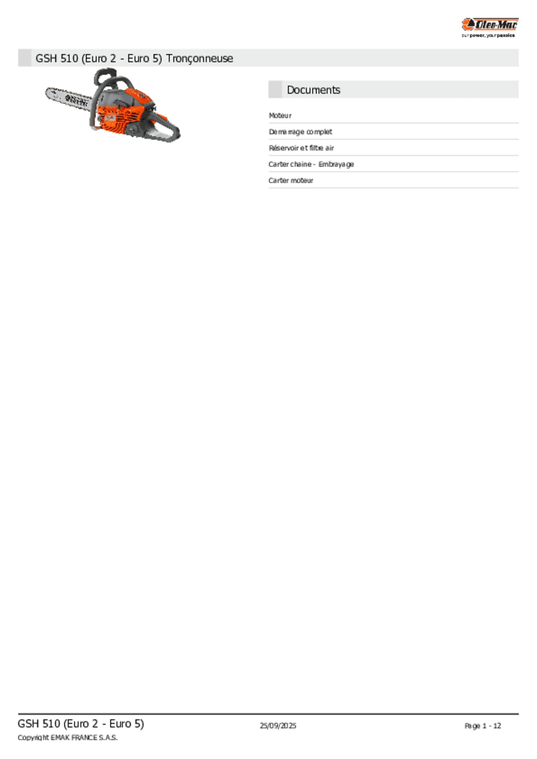 Elagueuse thermique professionnelle. GST 360. Moteur Emak. Cylindrée 35,1 cc. 1 cylindre 2 temps EURO...