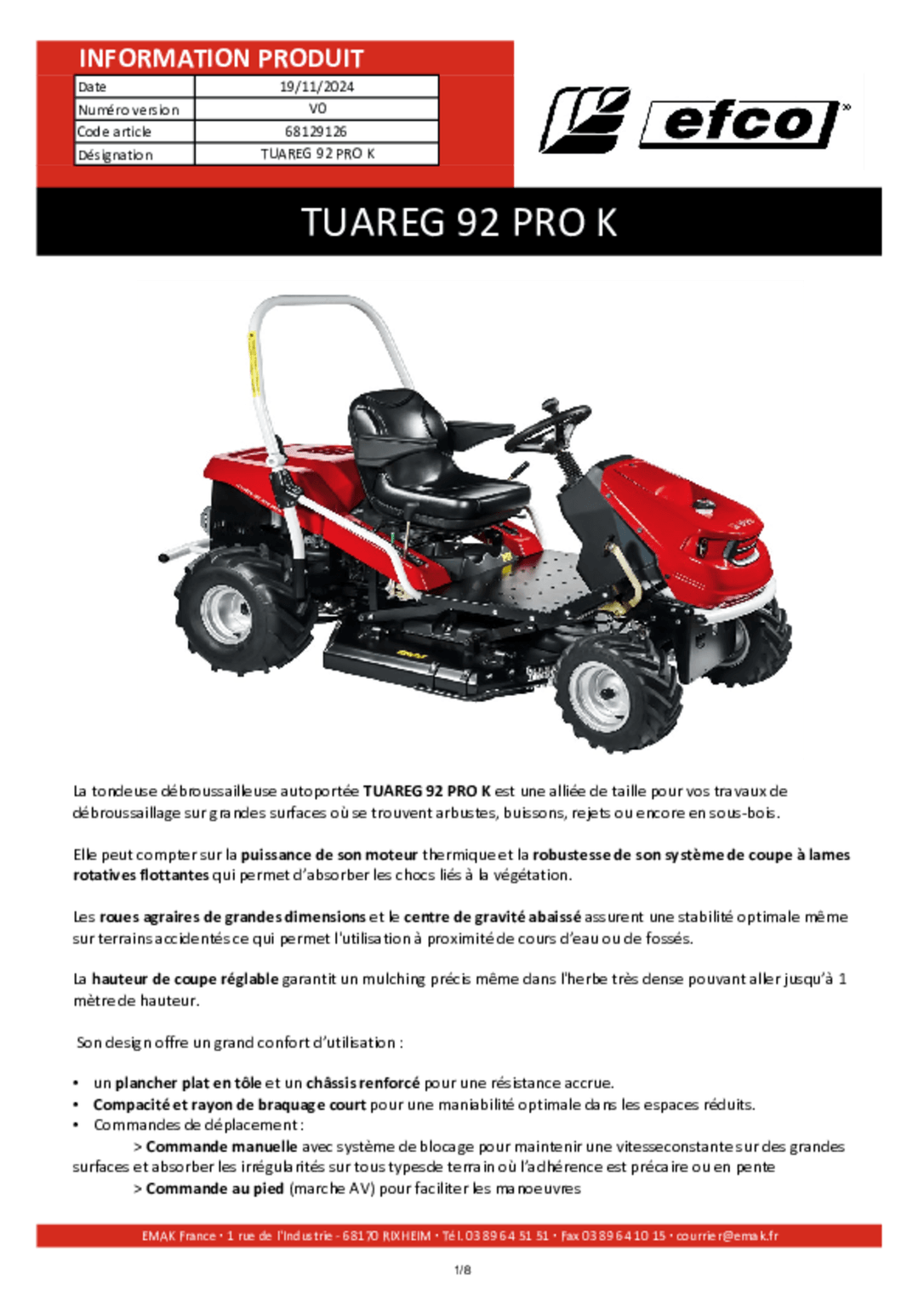 Carter de tonte : acier. largeur de coupe : 92 cm.