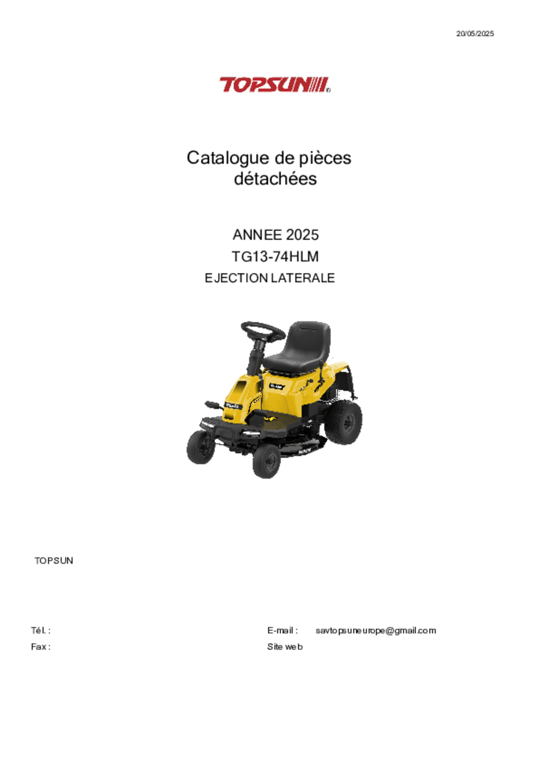 Tondeuse autoportée à éjection latérale TG 20/108 HLMBi