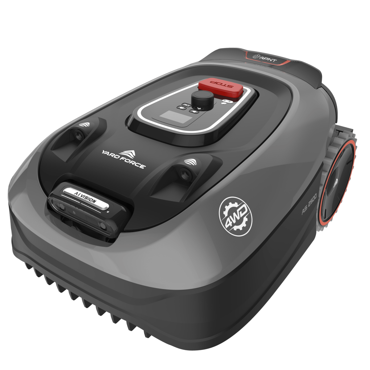 Batterie 20 V / 6 Ah. Technologie APNT, VSLAM, CAMERA (RGB). Connexion : Bluetooth, Wi-Fi, 4G. Antivol par localisation GPS. Hauteur de coupe 20-100 mm. 3 lames.