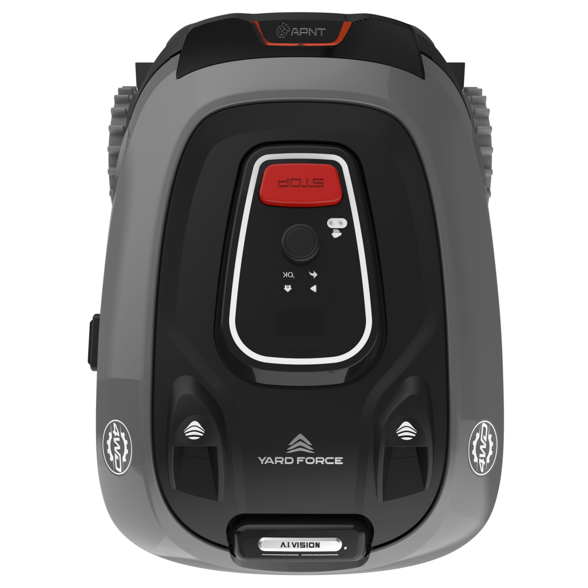 Batterie 20 V / 8 Ah. Technologie APNT, VSLAM, CAMERA (RGB). Connexion : Bluetooth, Wi-Fi, 4G. Antivol par localisation GPS. Hauteur de coupe 20-100 mm. 3 lames.