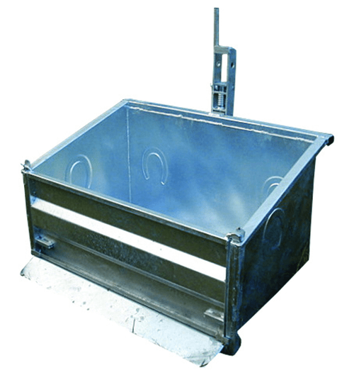 Benne portée galvanisée AC-BGA100EV. Dimensions : longueur : 0,65 m, largeur : 1 m, hauteur : 0,58 m,...