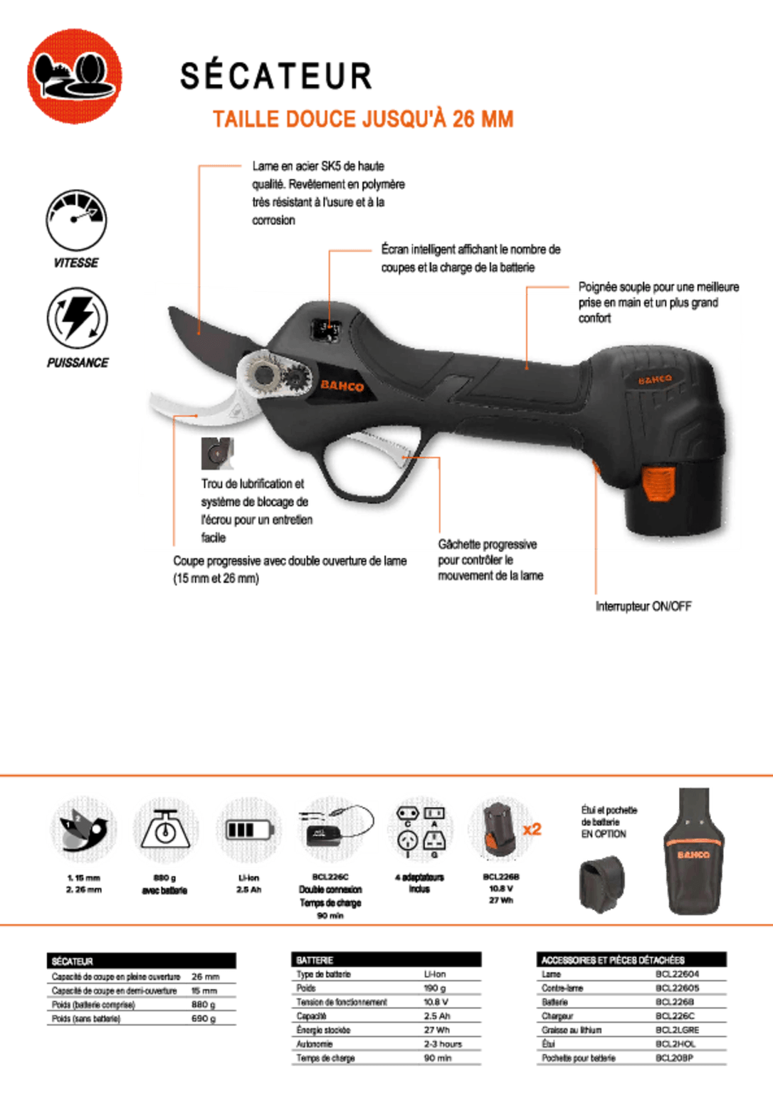 Diamètre de coupe max : 26 mm.